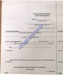 Заказать командировочное удостоверение военнослужащего в Аргуне можно и по иным причинам, например, необходимо срочно ехать на учения или в зону боевых действий. В таком случае следует обращаться к руководству с заявлением. Если человек потерял, или испортил документы, он может обратиться в нашу компанию. Купить командировочное удостоверение военнослужащего с доставкой мы предлагаем недорого.